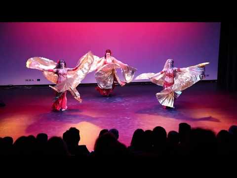 Our professional choreographies utilize traditional belly dance props including Isis wings, silk veils, scimitar swords, zills (finger cymbals), and Saidi canes.